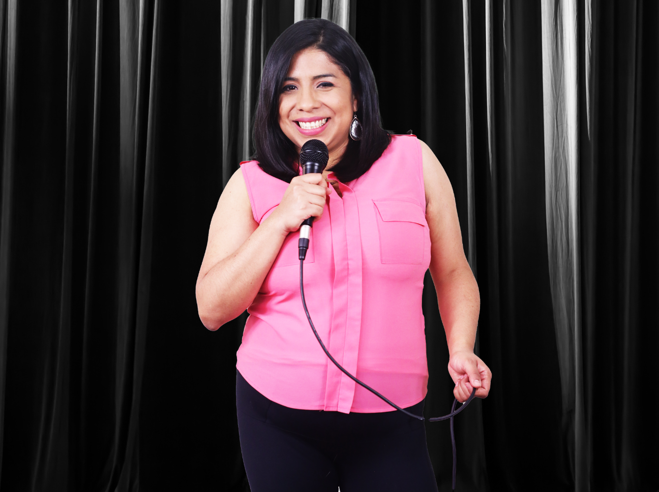 Licenciada en Ciencias de la Comunicación, Comediante, improvisadora teatral y una de las primeras mujeres en la escena del Stand-Up Comedy en Guatemala.